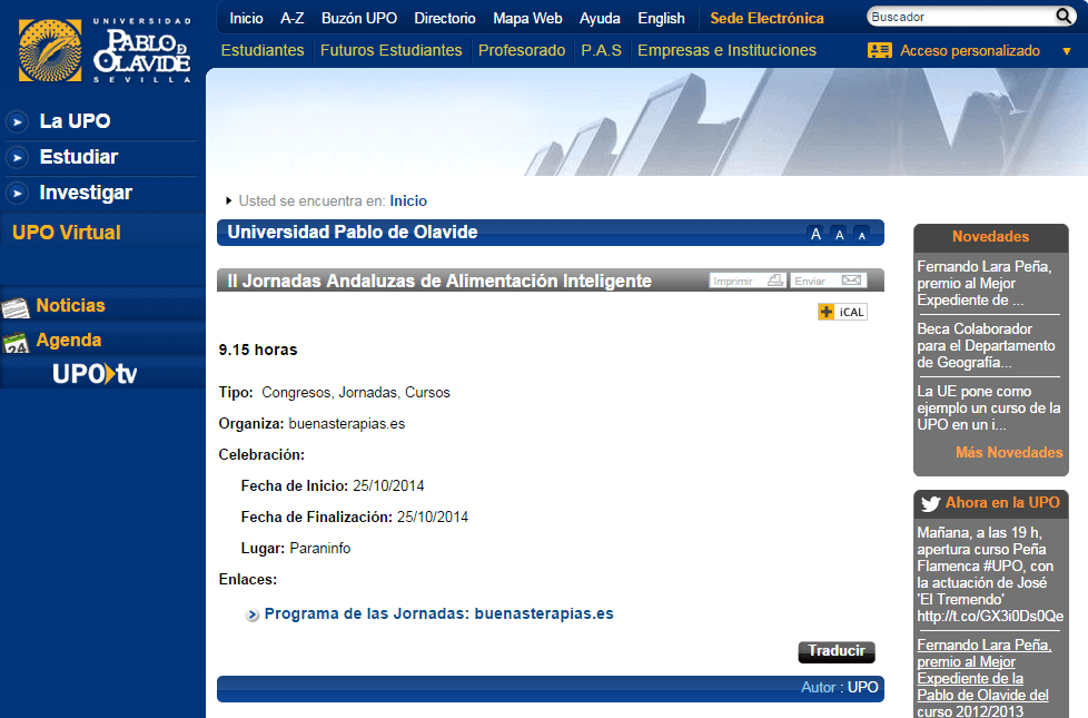 Escrito del Colegio Profesional de Dietistas-Nutricionistas de Andalucía (CODINAN) a la Universidad Pablo de Olavide (UPO) en relación a las II Jornadas de Alimentación Inteligente