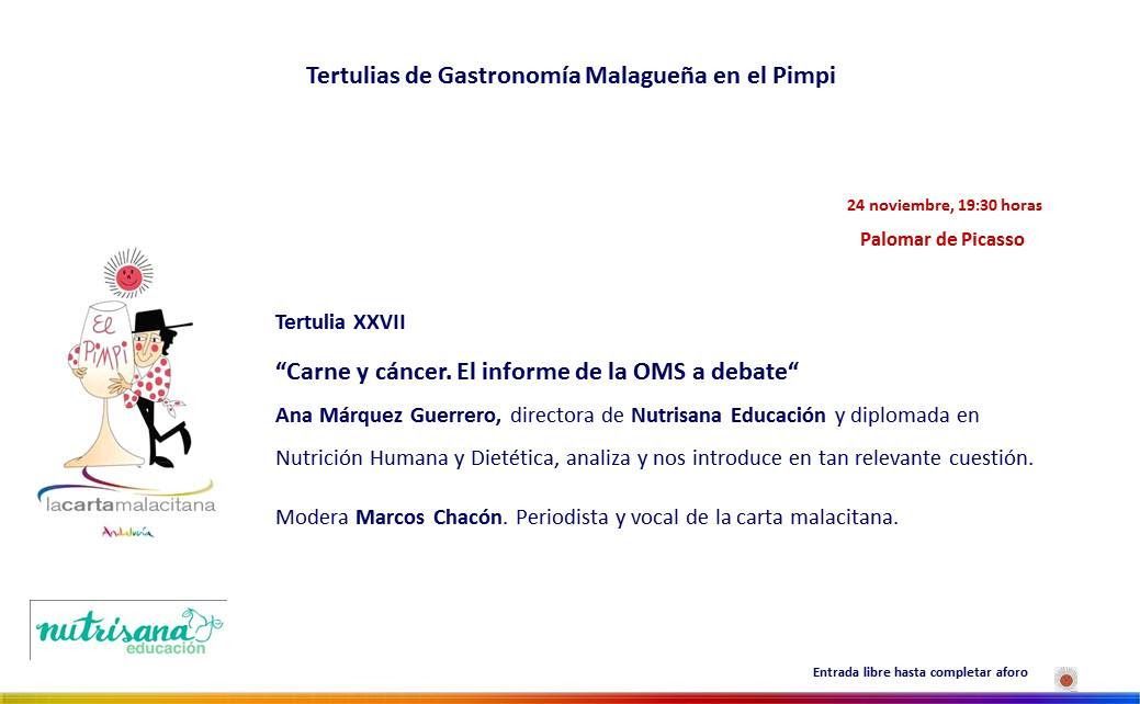 El próximo 24 de noviembre Ana Márquez, Colegiada de CODINAN, debatirá dentro del ciclo de tertulias sobre gastronomía malagueña de La Carta Malacitana donde se