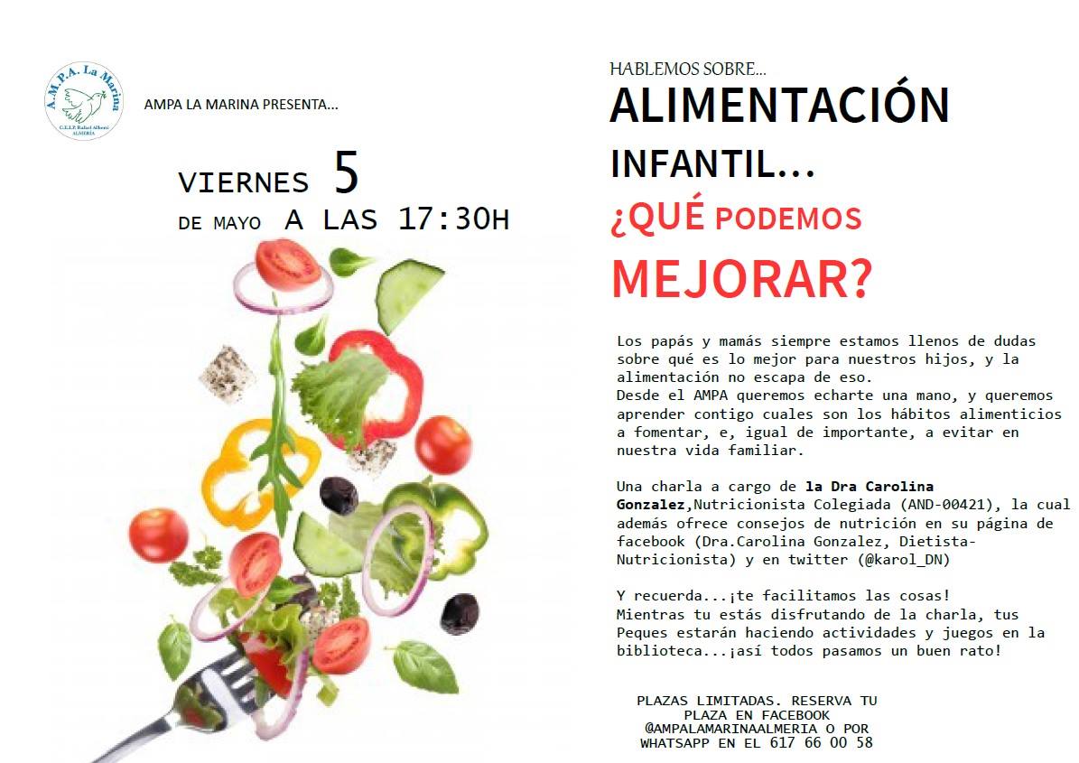 Nuestra colegiada Carolina González Antón impartió la charla «Alimentación infantil… ¿Qué podemos mejorar» dirigida a padres. Fecha: Viernes 5 de mayo a las 17.30 h. Lugar: