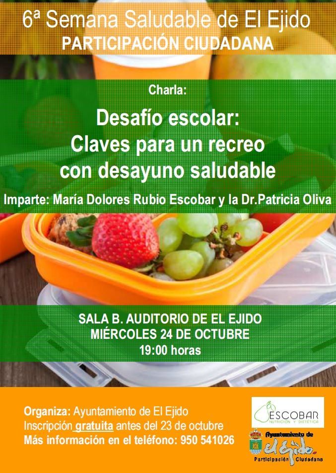 Nuestra colegiada María Dolores Rubio Escobar (Escobar Nutrición y Dietética) impartirá la charla-taller «Desafio escolar: claves para un recreo con un desayuno saludable» junto con