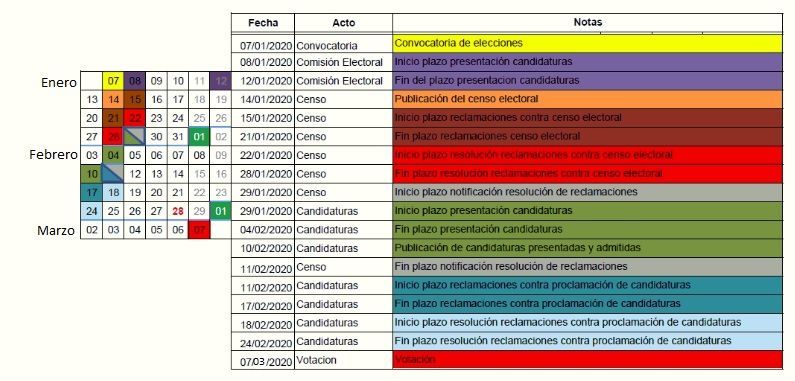 A continuación podrá acceder a la normativa relativa a la convocatoria de elecciones para el próximo día 7 de marzo de 2020: Convocatoria de elecciones.pdf