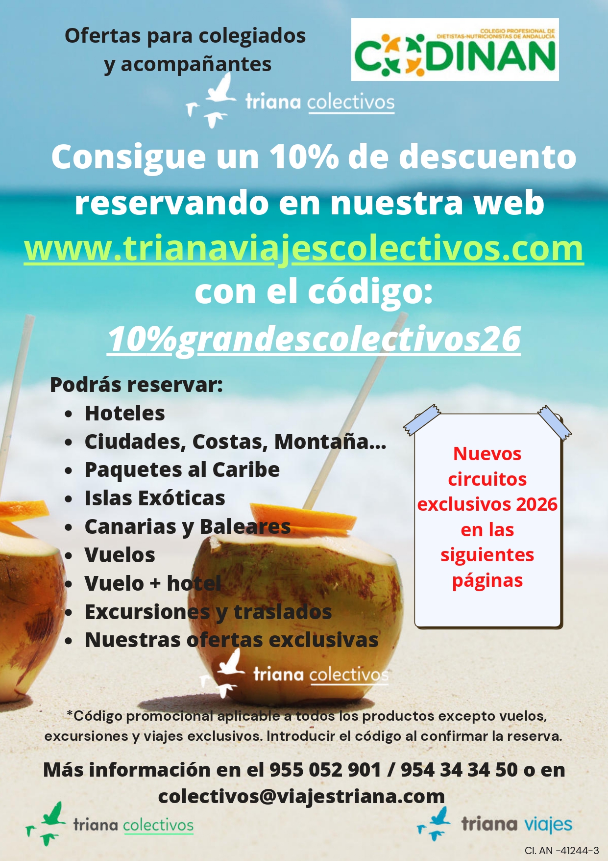 Con motivo del acuerdo de colaboración que CODINAN mantiene con la empresa Viajes Triana, a continuación se muestra información actualizada de las ofertas destacadas: