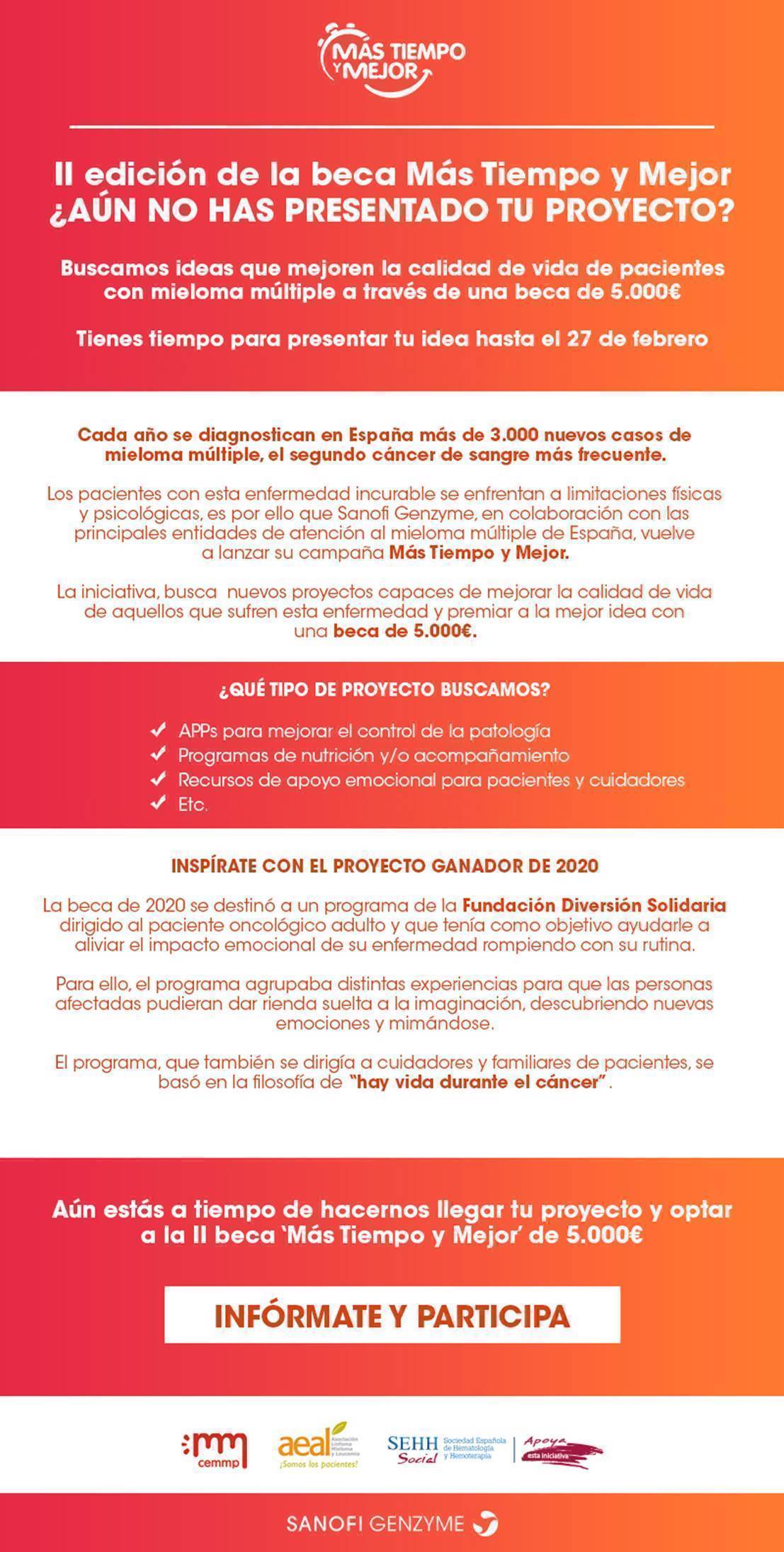 - Sanofi se reserva el derecho de poder llevar a cabo una acción de comunicación con dicho beneficiario para dar visibilidad al proyecto.