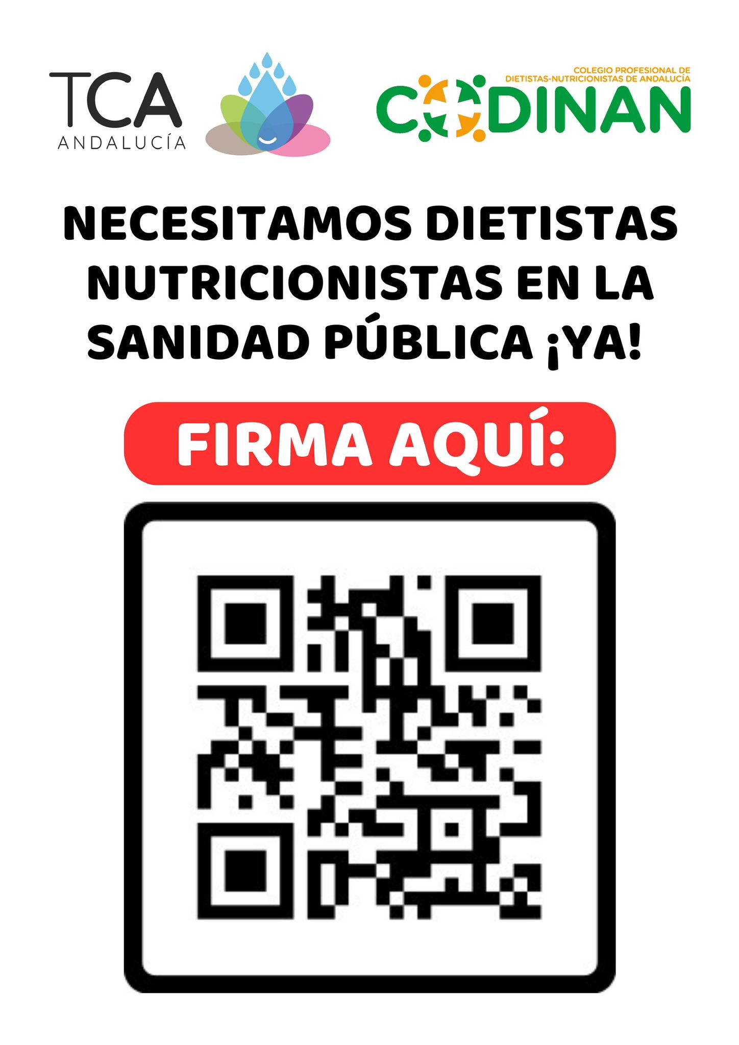 El Colegio Profesional de Dietistas-Nutricionistas de Andalucía (CODINAN), en colaboración con TCA Andalucía han lanzado una campaña de recogida de firmas para la inclusión de la categoría de dietista-nutricionista en la cartera de servicios del SAS (Servicio Andaluz de Salud).