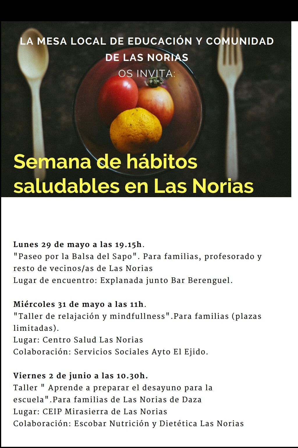 Nuestra colegiada María Dolores Rubio Escobar impartirá el taller «Aprende a preparar el desayuno para la escula» en el marco de la semana saludable de