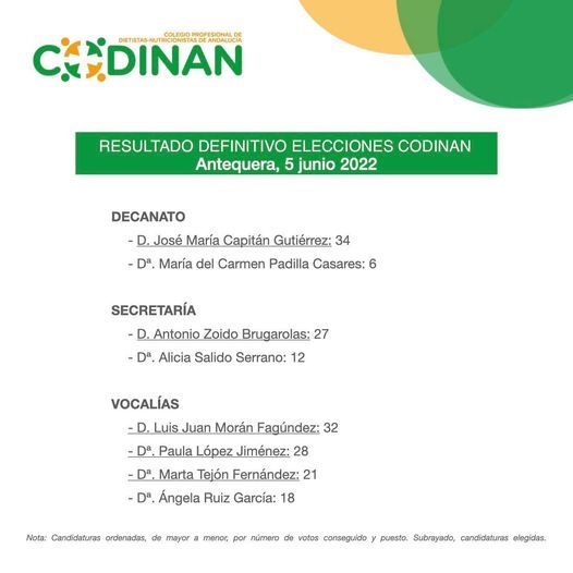 Tras las elecciones celebradas el pasado domingo 5 de junio de 2022, procedemos a publicar el acta de los resultados definitivos a la Junta de