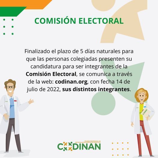 Finalizado el plazo de 5 días naturales para que las personas colegiadas presenten su candidatura para ser integrantes de la Comisión Electoral, se comunica por