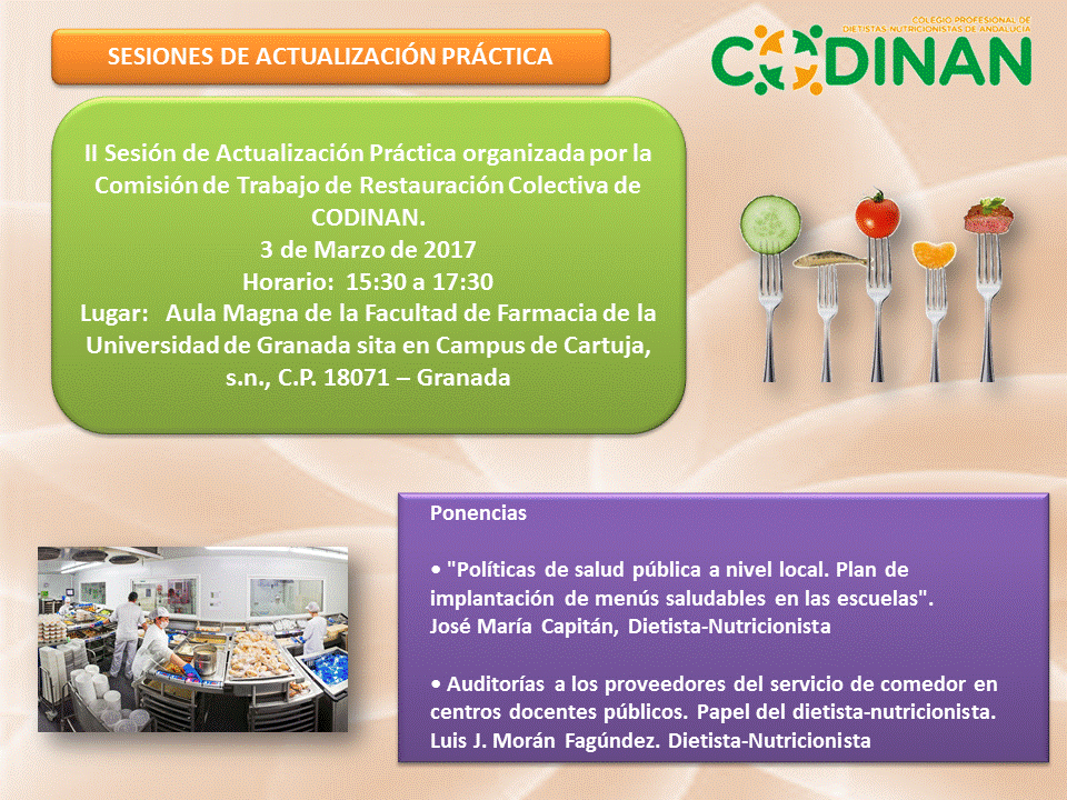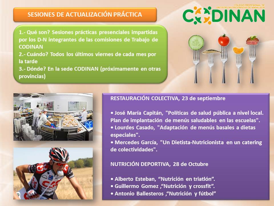 CODINAN pone en marchas las Sesiones de Actualización Práctica. 1.- Qué son? Sesiones prácticas presenciales impartidas por Dietistas-Nutricionistas con experiencia profesional en la temática de