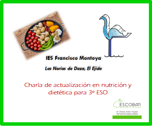 Nuestra colegiada María Dolores Rubio Escobar impartirá una charla de actualización en dietética y nutrición que pretende pulir los contenidos ofrecidos por los libros de texto de 3º de ESO. Será el próximo 18 de diciembre de 2017 en el IES Francisco Montoya de Las Norias de Daza, El Ejido.