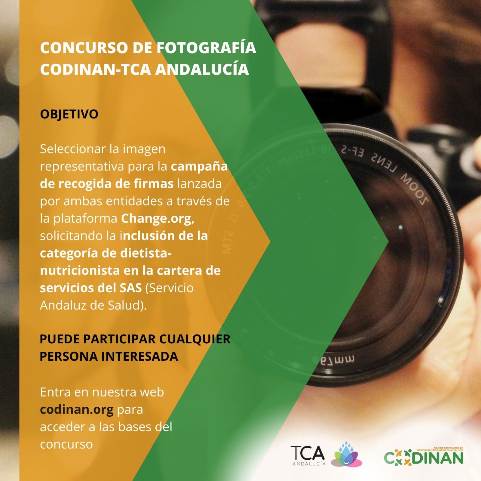 CODINAN, en colaboración con TCA Andalucía, presenta un concurso de fotografía con el objetivo de seleccionar la imagen representativa para la campaña de recogida de firmas lanzada por ambas entidades a través de la plataforma Change.org, solicitando la inclusión de la categoría de dietista-nutricionista en la cartera de servicios del SAS (Servicio Andaluz de Salud):