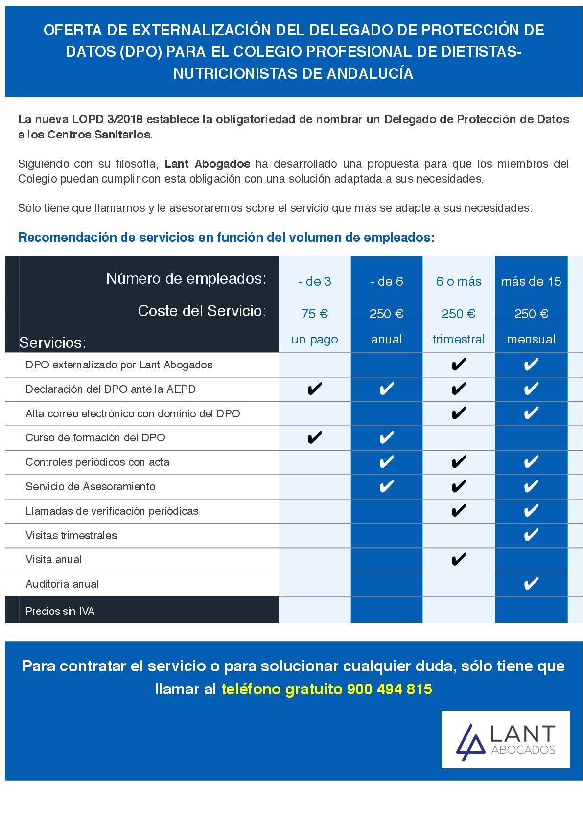 Así mismo, L@NT Abogados ofrece una oferta para la externalización del delegado de protección de datos (DPO):