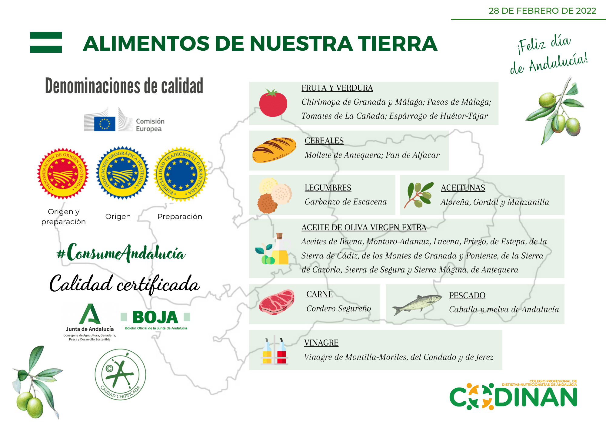 Hoy, en el Día de Andalucía, queremos poner en valor la riqueza, la variedad y la calidad de los productos que nos caracterizan y nos definen. Nos sumamos a la campaña #ConsumeAndalucía, lanzada por la Junta de Andalucía para la promoción de los productos de la tierra: “Llena tu mesa de Andalucía”.