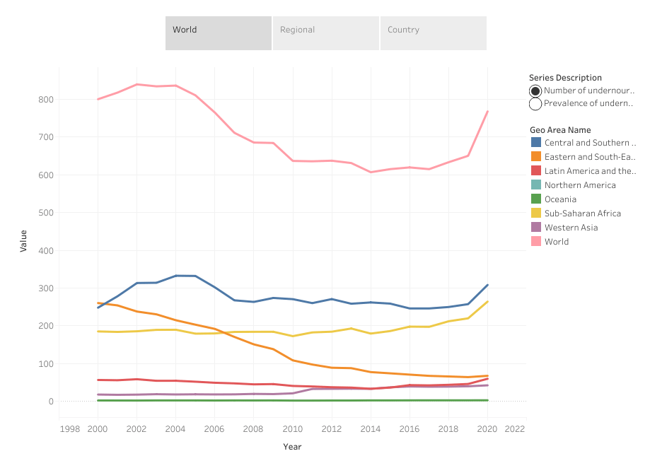 Figura 1. Fuente: Indicator 2.1.1. Prevalence of undernourishment (FAO) (2).