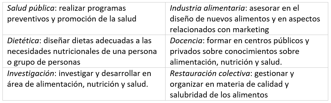 Estos profesionales son graduados en Nutrición Humana y Dietética, formación universitaria de 4 años de duración donde desarrollan habilidades relacionadas con las áreas de nutrición, dietética, bromatología, microbiología, seguridad alimentaria, tecnología de los alimentos y salud pública, entre otras materias.