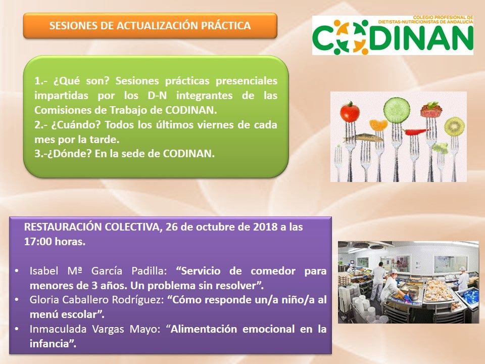 El próximo viernes día 26 de octubre a las 16:30 horas tendrá lugar la IV Sesión de Actualización Práctica correspondiente a la Comisión de Trabajo de Restauración Colectiva en el CN Centro de Negocios, sito en Plaza Aviador Ruiz de Alda, nº 11, 41004, Sevilla.