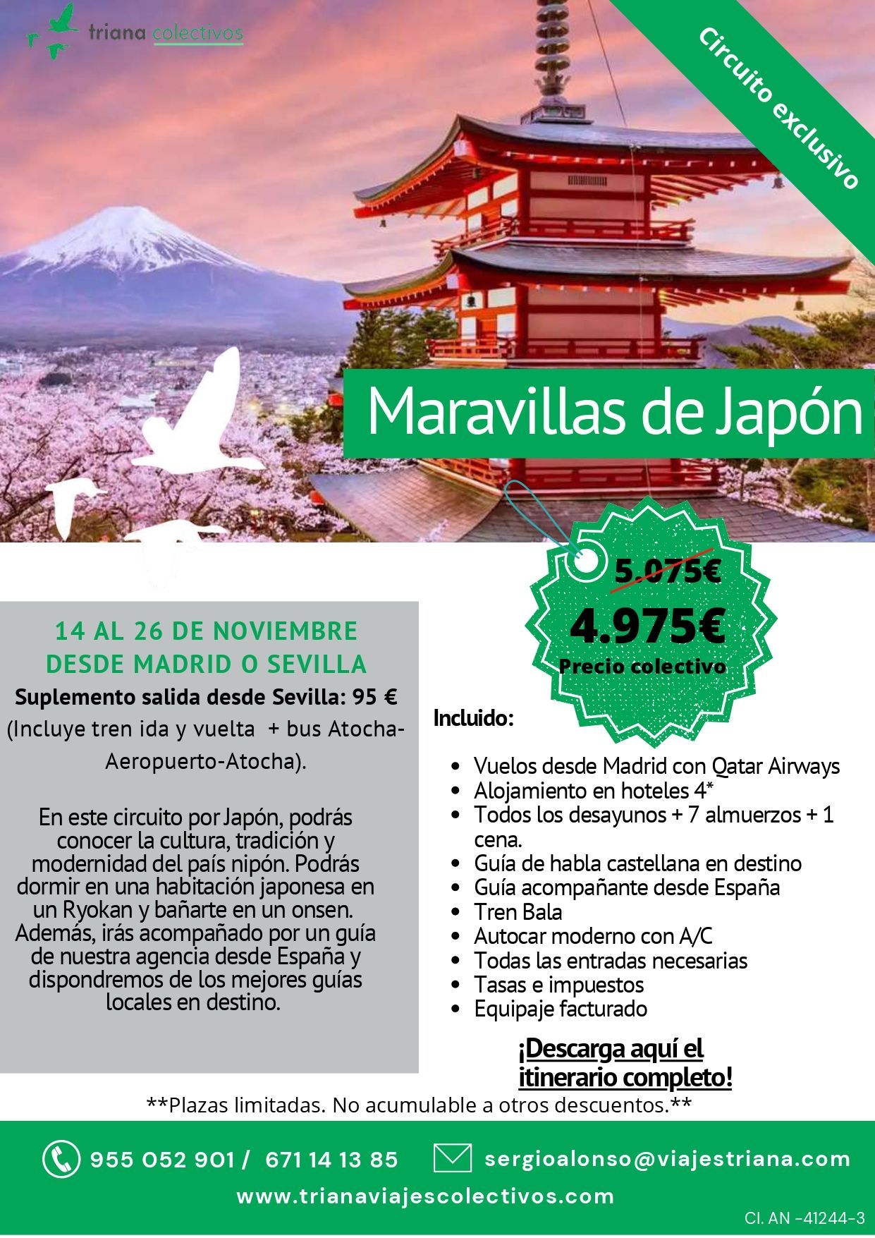 Con motivo del acuerdo de colaboración que CODINAN mantiene con la empresa Viajes Triana, a continuación se muestra información actualizada de las ofertas destacadas: