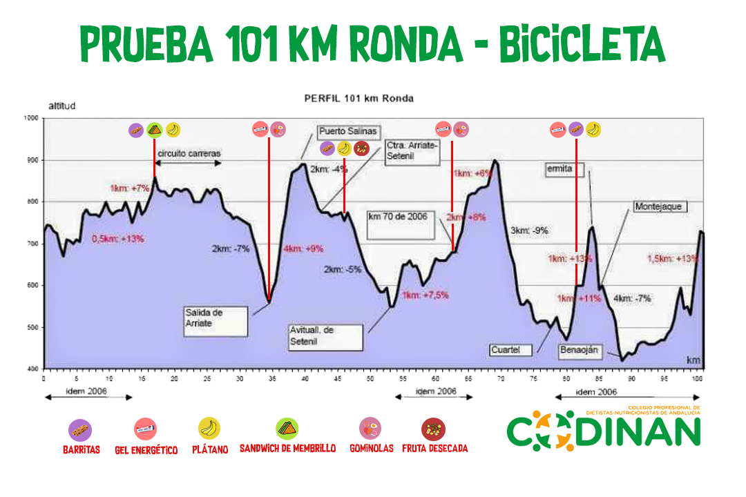 En estas infografías realizadas por la Comisión de Trabajo de Nutrición Deportiva del Colegio Profesional de Dietistas-Nutricionistas de Andalucía podrá ver las recomendaciones para la alimentación durante la prueba tanto en la modalidad de Carrera a Pie como de Bicicleta, así como recomendaciones para antes y después de la prueba.